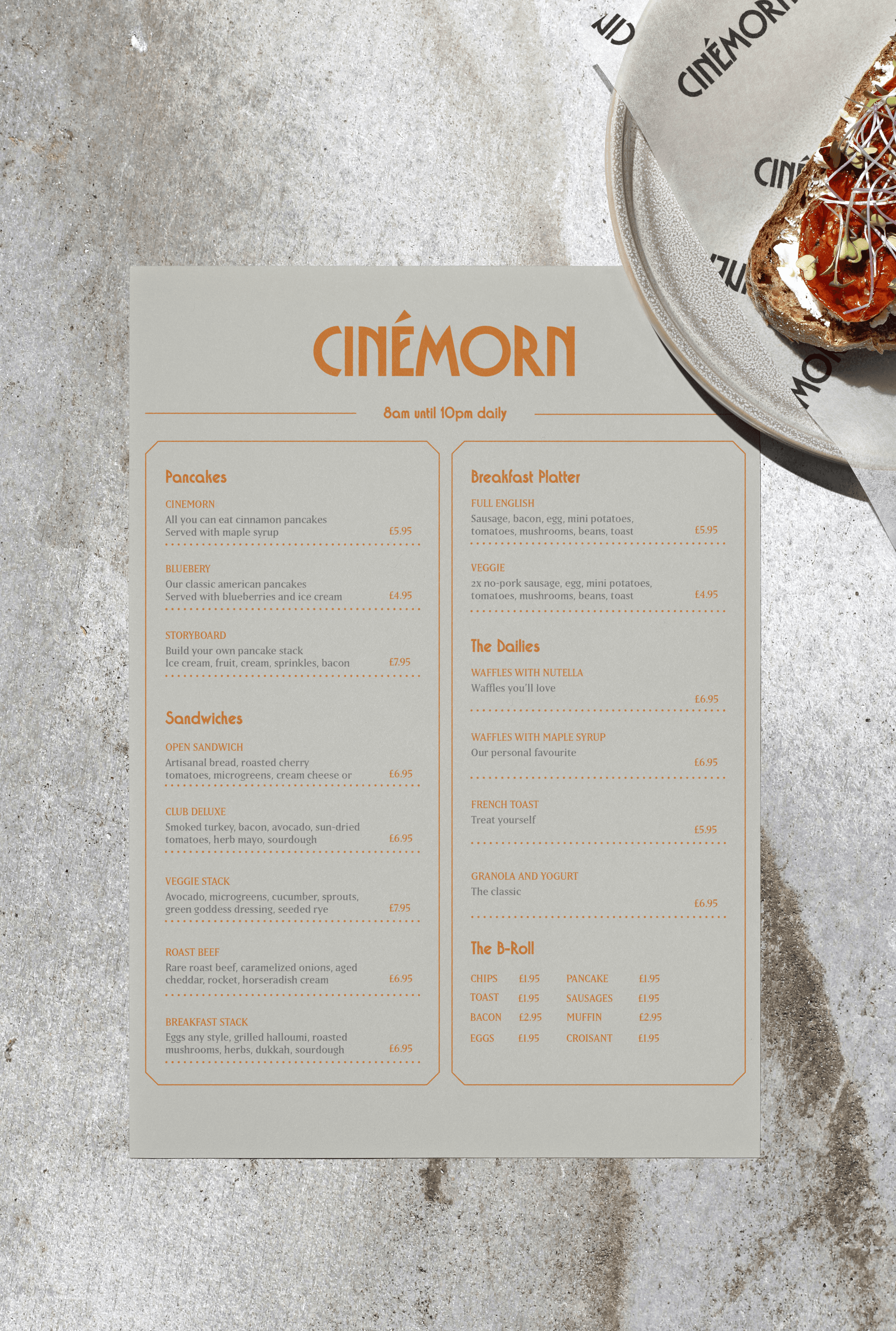 Where breakfast meets the big screen, Cinémorn serves up a feast for all the senses. We cooked up a brand identity that's as unexpected as pancakes at a midnight showing – blending art deco elegance with playful modern flair.