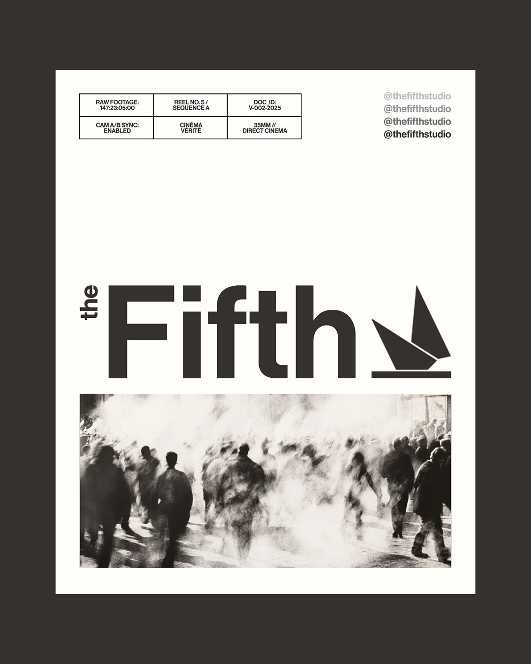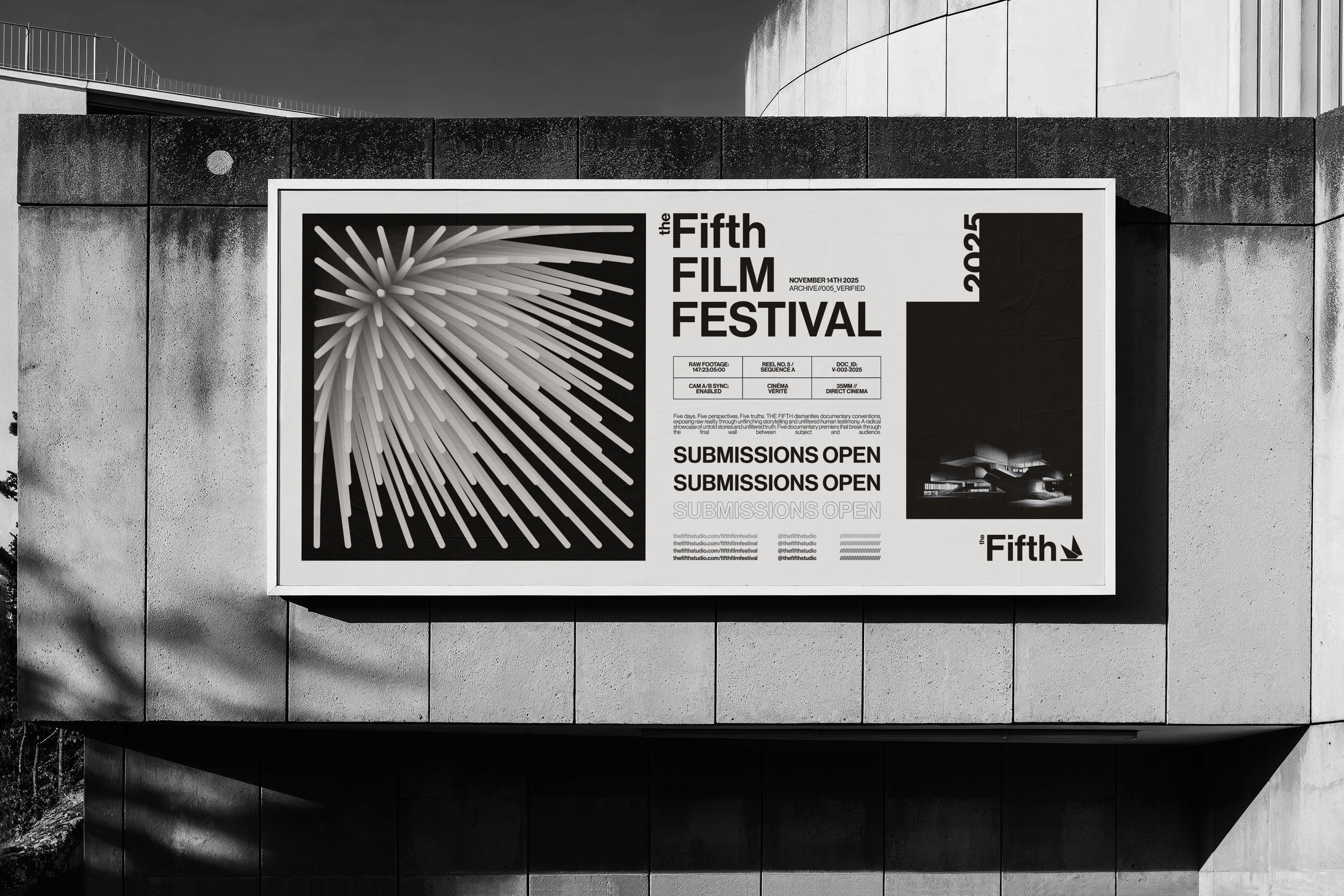 The Fifth stands where raw cinema meets architectural edge. For this documentary powerhouse, we crafted an identity system that's as uncompromising as the stories they tell. Stark monochrome visuals collide with brutalist imagery, while our spotlight-inspired icon masterfully merges cinematic and architectural worlds.